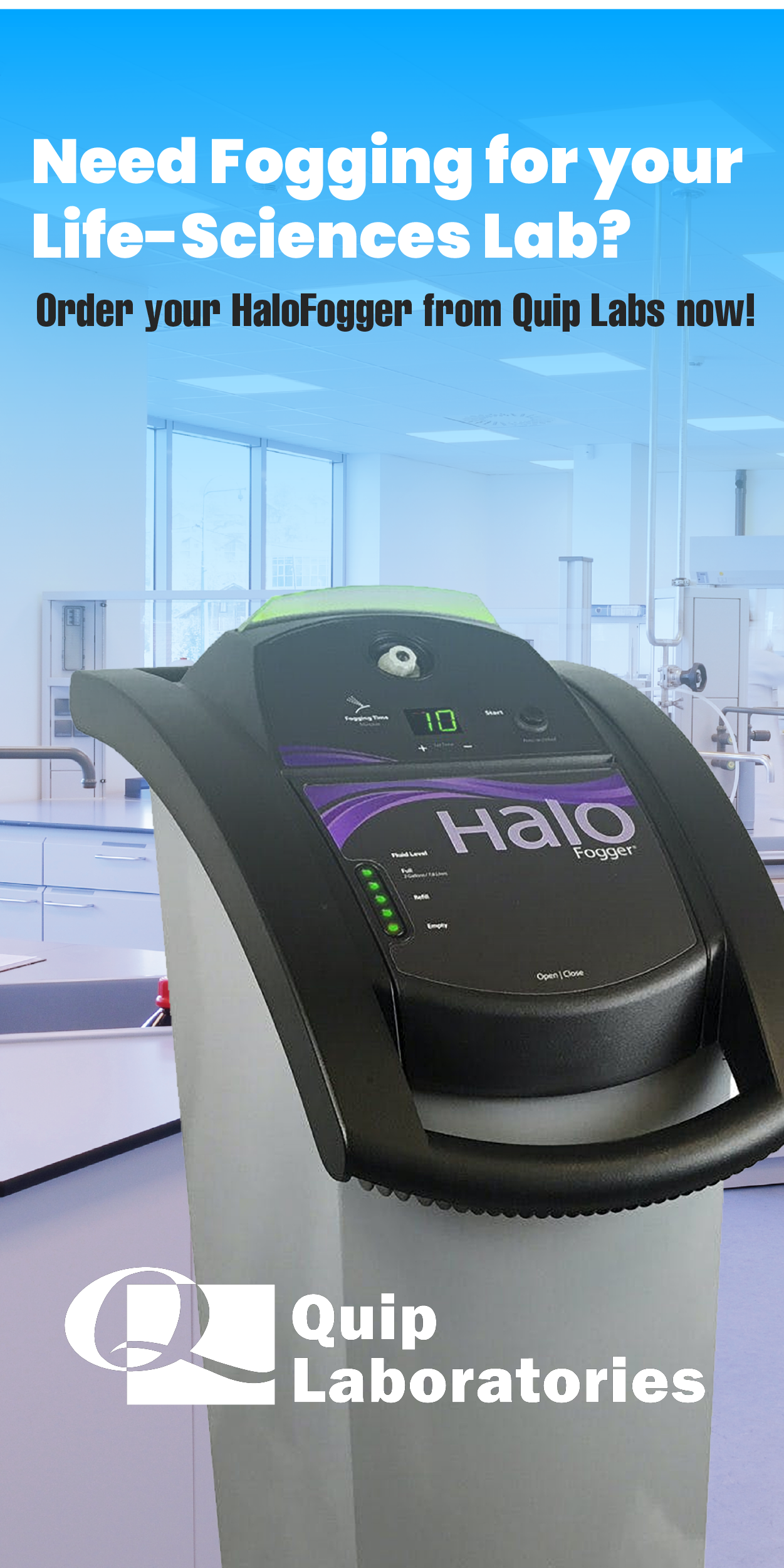 All HaloFogger® Models are designed to work with our HaloMist® surface disinfectant. HaloMist is an extremely effective blend of ionic silver and hydrogen peroxide that provides 6-log kills and breaks down into water and oxygen once its finished disinfecting your space.